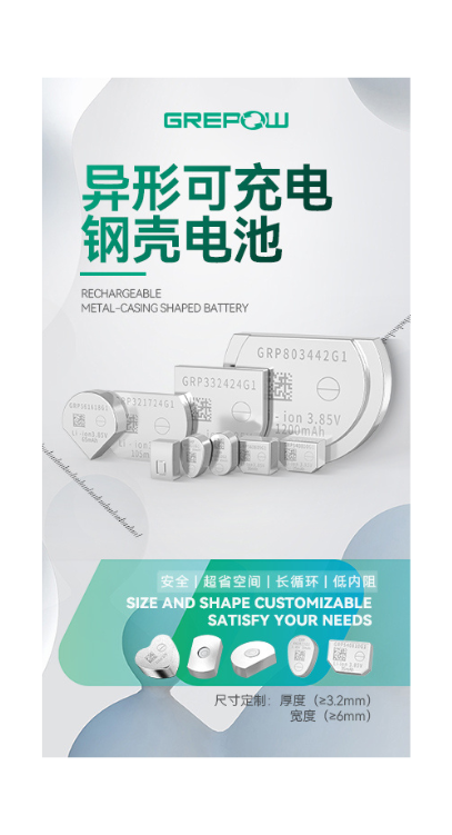 格瑞普不僅提供可定制的金屬外殼形狀電池,也提供量身定制的解決方案。鋼殼異形電池設(shè)計(jì)薄至 3.5 mm,窄至 6 mm,可滿足任何特定形狀的要求。這些電池還可定制為指定電壓(3.7V、3.8V、3.85V 和 3.9V),以滿足設(shè)備的各種需求。
